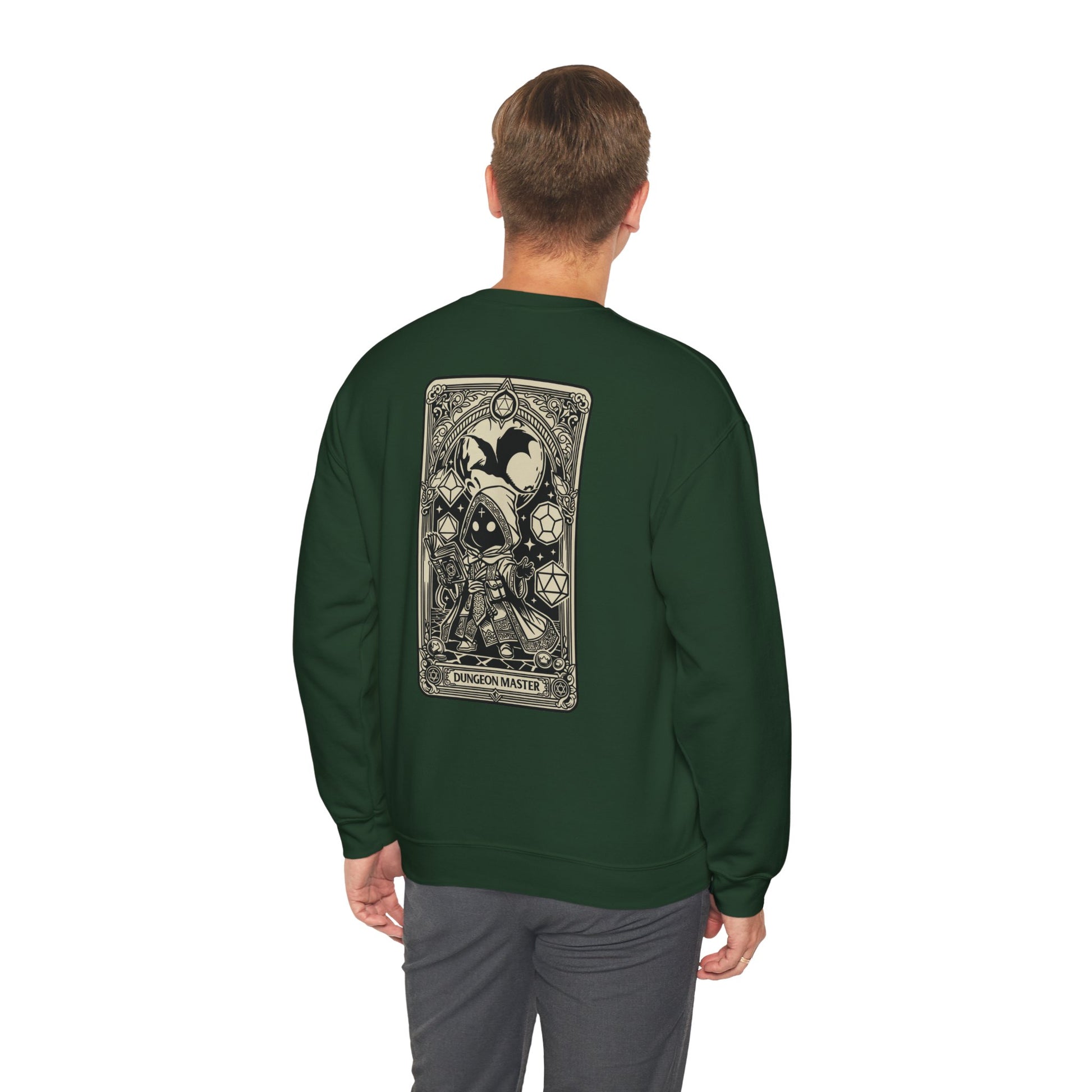The unseen hand that shapes worlds and weaves destinies. The Dungeon Master crewneck honors the storyteller — the one who breathes life into the realm, balances fate and chaos, and guides heroes through peril and triumph alike.